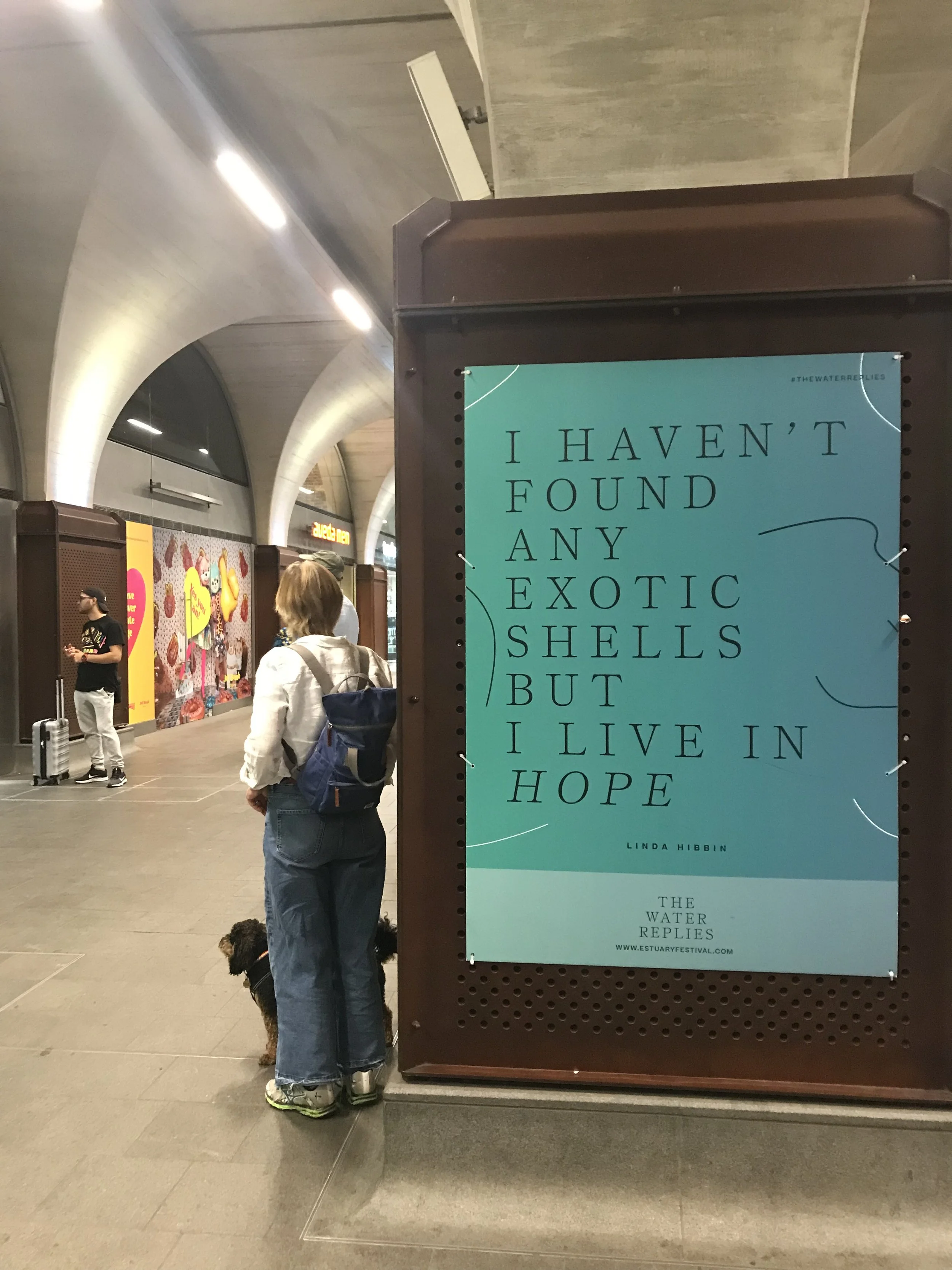 As a producer on Estuary Festival, I coordinated The Water Replies creative journalling. Between March and December 2020, hundreds of people living along both sides of the Estuary kept creative journals, using words, photos, drawings, collage, poetry, and prose, to explore local relationships to the river and how the water impacts the rhythms of daily life in what turned out to be one of the most extraordinary times for collective reflection as the global Covid-19 pandemic took hold.. The completed journals were collected and presented as part of Estuary 2021 with some journalling participants also recording them as short, original readings while others filmed theirs as part of a digital exhibition on the Estuary Festival 2021 website. Others were used as window displays at various locations in Essex and Kent, with text extracts writ large on poster sites and murals.